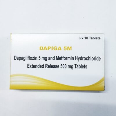 Dapiga-5M is a combination medication containing Dapagliflozin 5mg and Metformin Hydrochloride 500mg. It is designed to help manage blood sugar levels in adults with type 2 diabetes mellitus.